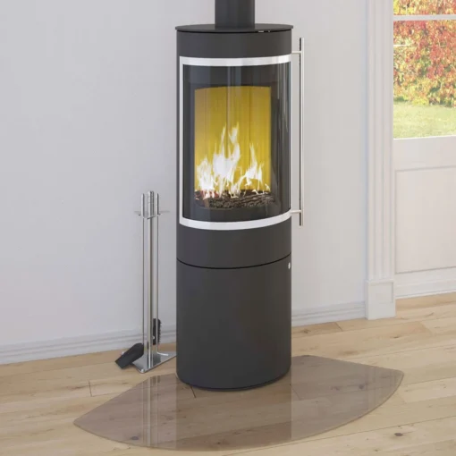 Je nach Gegebenheiten kann der Holzofen auch mit einem Drehteller ausgestattet werden, um die Bedienung noch einfacher zu gestalten. Das Automatiksystem Efficiency Controller kontrolliert die Abgastemperatur und stellt automatisch die Optimale Verbrennungsluftzufuhr ein. So lässt sich Brennstoff einsparen und Heizkosten senken.
